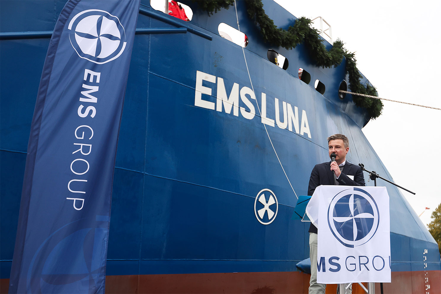 The EMS Luna has just completed its maiden voyage from Asia to Europe. "The name giving ceremony certainly is another milestone for us, clearly illustrating that the EMS Group is continuing on its growth path," says EMS Group CEO Andreas Bergmann. "With our versatile and sustainable coasters, we are strengthening our presence in the short sea market and can provide our customers with even quicker and more flexible tailor-made transport solutions."