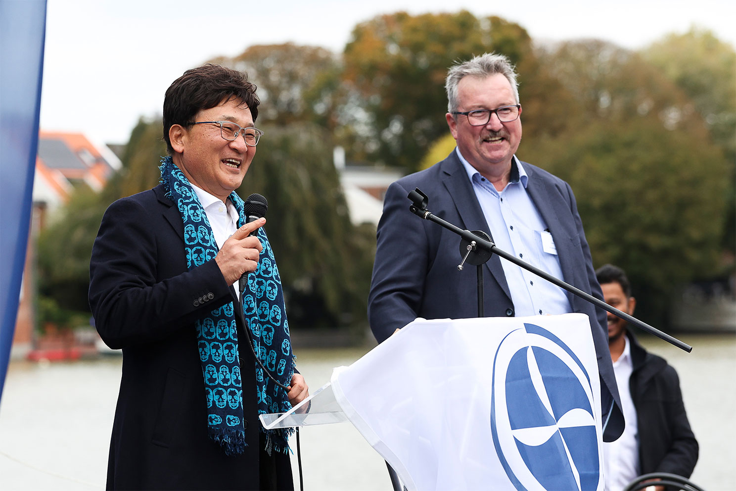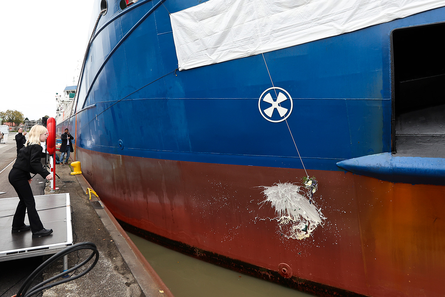The obligatory bottle of champagne was smashed against the hull in the Port of Leer, in front of numerous international guests and in the immediate vicinity of the EMS Group headquarters. The ceremony was made even more special by the fact that the town, which has a centuries-old maritime tradition, is currently celebrating the Gallimarkt. Maritime companies based in Leer traditionally welcome guests from around the globe to this large annual fair.