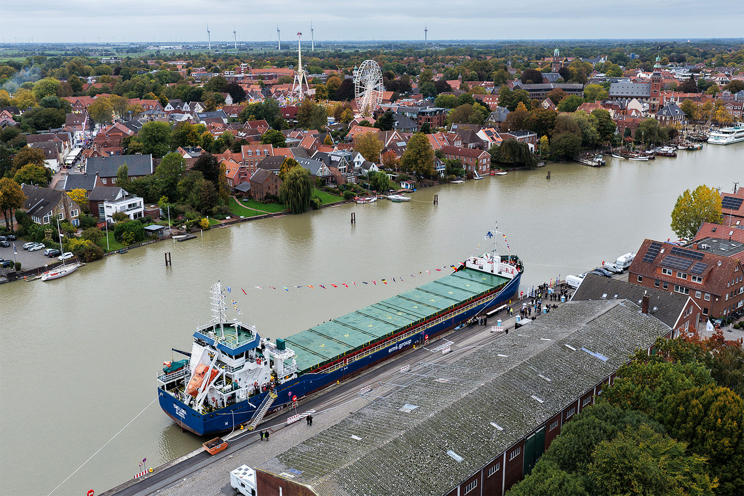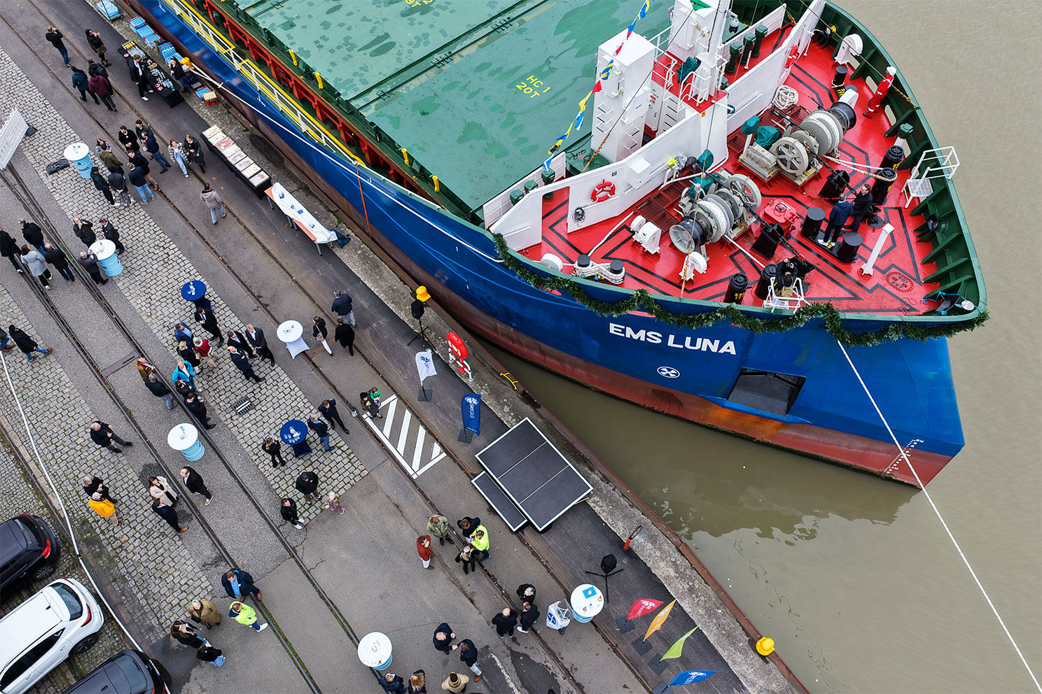 Ten-year-old Fenna, the daughter of longtime EMS Group employee Heika Iwwerks, was the godmother of the EMS Luna. She wished the ship and its crew smooth sailing and always a hand's breadth of water under the keel. Mayor Claus-Peter Horst congratulated the EMS Group on the naming of the vessel and expressed his delight that the traditional yet modern maritime group strengthens Leer’s reputation as maritime hotspot in Germany.